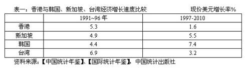 香港自二战后至回归前的长时期中,曾经保持着长期的增长与繁荣,与韩国、新加坡和台湾地区并称为“东亚奇迹”中的“亚洲四小”。但是在1997年回归以后的15年里,香港的经济增长率却显著低于其他“三小”。都地处东亚,都长期面向美欧市场由出口拉动增长,近20年发展又都是逐渐被中国大陆经济所牵引,香港的经济增长能力却为何绩不如人呢?
