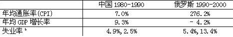 表3 中俄价格改革的第一个10年:通胀、增长和失业