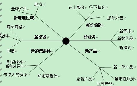 (1)产品扩张,针对主要客户销售新产品和服务,最常见且潜力最高的方式。例如IBM公司针对计算机硬件的客户创造了IBM全球服务,并占有全公司40%的规模。