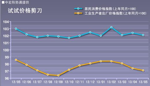5月份,全国居民消费价格总水平同比上涨2.1%,较上月超预期回落0.3个百分点。更为严峻的是PPI同比下降2.9%,降幅较上月扩大0.3个百分点,环比继续下降0.6%,生产领域的通缩形势加剧。