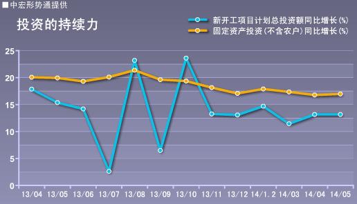 2014年1-5月份,全国固定资产投资(不含农户)153716亿元,同比名义增长17.2%,增速比1-4月份回落0.1个百分点,投资增速连降8个月。