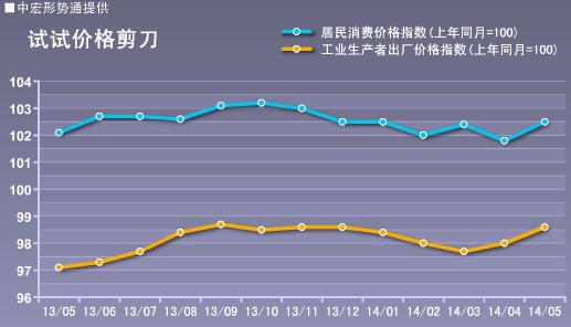 2014年5月,社会消费品零售总额21250亿元,同比名义增长12.5%,增速较上月提高0.6个百分点,扣除价格因素实际增长10.7%,较上月下滑0.2个百分点,消费增速名升实降。