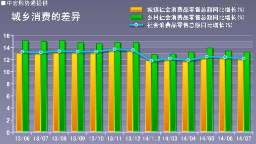 相对于投资和出口来说,消费总体相对平稳,但近两月呈现出稳中有落的态势。7月,消费名义和实际同比增速均较上月放缓了0.2个百分点。分地区来看,城镇和乡村消费同比增速也均较上月放缓了0.2个百分点。