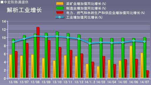 从先行指标来看,7月官方制造业PMI指数为51.7,连续5个月回升创新高;汇丰制造业PMI终值为51.7,创18个月新高,也显示制造业稳中向好的趋势明显。但需求不足和产能过剩仍是抑制工业增长的两大主要因素,再加上去年下半年以来的高基数,后期工业好转也有限。