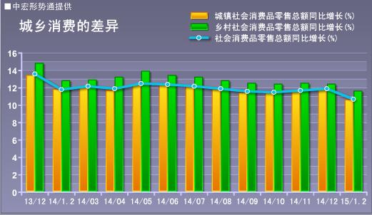 2015年1-2月份,社会消费品零售总额47993亿元,同比名义增长10.7%,较去年全年下滑1.3个百分点。不过扣除价格因素实际增长11.0%,较去年全年上升0.1个百分点。尽管实际消费增速较去年上升了0.1个百分点,不过这并不值得乐观,前两月,实际消费增速罕见的高于名义消费增速0.3个百分点,显示出经济的通缩隐忧。