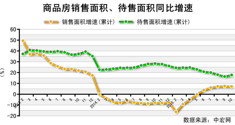 从房地产的情况来看,虽然接连受到降息降准的利好影响,但备受关注的“金九银十”却并未如约而至。相反,相比今年5至8月,每月5000多套的成交量,9、10月份分别只有4512套和3455套的成交,颓势明显。从统计局的数据来看,前10月,商品房销售面积同比增长7.2%,较前9个月下降了0.3个百分点。而同时,房屋竣工面积同比增速回升了5.6个百分点,致使商品房待售面积增速继续上升达到17.8%。这也呼应了数据发布前一天习近平在中央财经领导小组第十一次会议中提出的,“要化解房地产库存,促进房地产业持续发展。”这是十八大以来习近平第一次明确提到房地产。