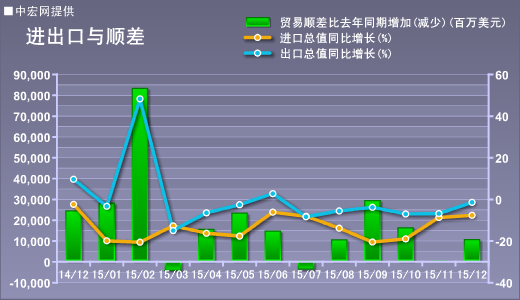 弱势的经济也下拉了物价水平,2015年,CPI增长1.4%,较去年下降了0.6个百分点,同时,PPI下降5.2%,是拖累物价增长的主要因素,工业通缩向整体经济通缩蔓延是我们当前最为担忧的问题。 进出口双双陷低迷 维稳重在汇率贬值